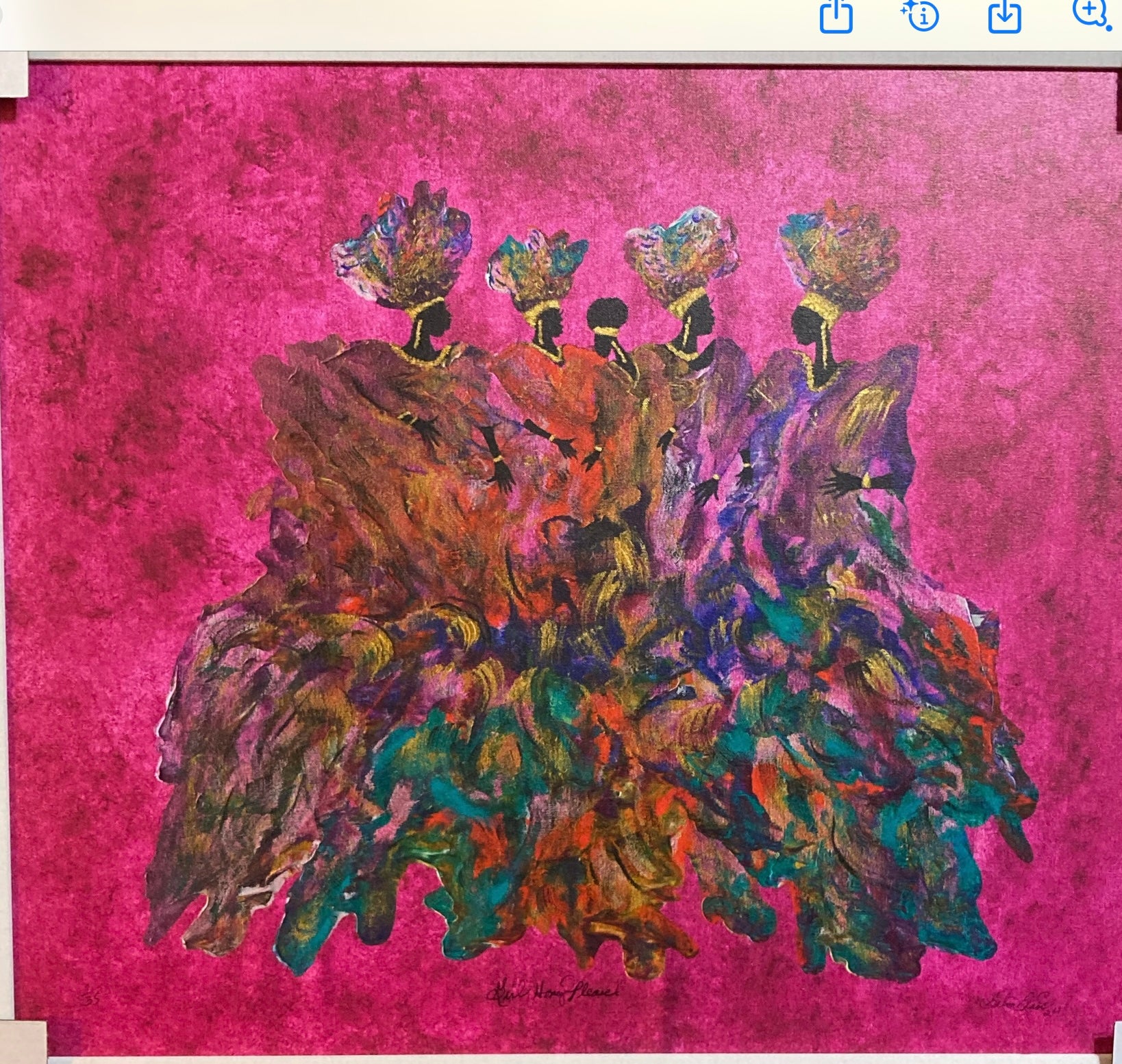 Fuchsia background. Size is 33″ wide x 29″ high. Unframed.